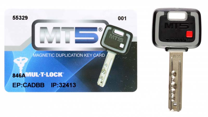 Het MT5-systeem van Mul-T-Lock, de 5de ultra-geperfectioneerde generatie High Security-platformen voor cilinders, die gebaseerd zijn op dertig jaar know how, biedt een geavanceerd veiligheidsconcept aan waarin meerdere doeltreffende elementen gecombineerd zijn: de gebrevetteerde Alpha-veer op het uiteinde van de sleutel, een magnetische kaart voor de duplicatie van de sleutel en de KC5, een computergestuurde machine waarmee u sleutels kunt maken.